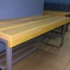 Banca vestiar simpla cu suport pantofi este fabricata din profile rectangulare de otel 30x30x2mm / 45x45x3mm. Acestea sunt vopsite in 3 straturi pentru rezistenta sporita la uzura. Culoarea de baza este gri, la cerere si pentru cantitati mai mari de 6 ml bancile pot fi vopsite in orice alta culoare stabilita de comun acord.