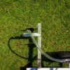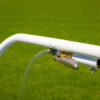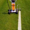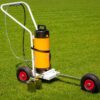 Carucior cu pompa pentru trasat teren, marcator de linii care poate fi utilizat cu vopsea de marcaj pe baza de apa, cu o capacitate de aproximativ 10 l, cu posibilitatea de rotire a rotii din fata pentru marcarea inclusiv a zonelor de colt sau laterale.