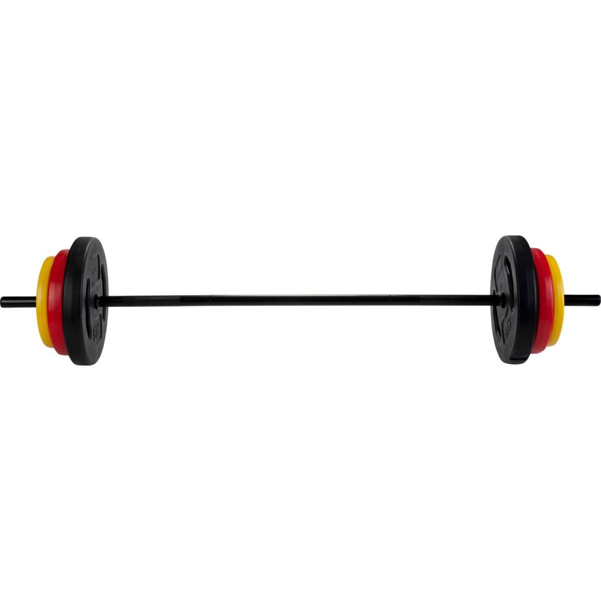 - Greutăți: 2 x 5 kg (negru), 2 x 2,5 kg (roșu), 2 x 1,25 kg (galben)